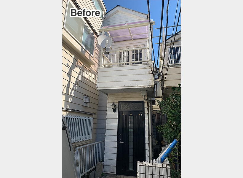 近隣とのバランスを考え、外壁の塗装はこれまでとほぼ同じ色をお選びになりました。玄関ドアは新しくして、玄関の上にあった2階バルコニーを撤去、屋根はカバー工法できれいになりました。建付けが悪くなっていた門扉は撤去しました。