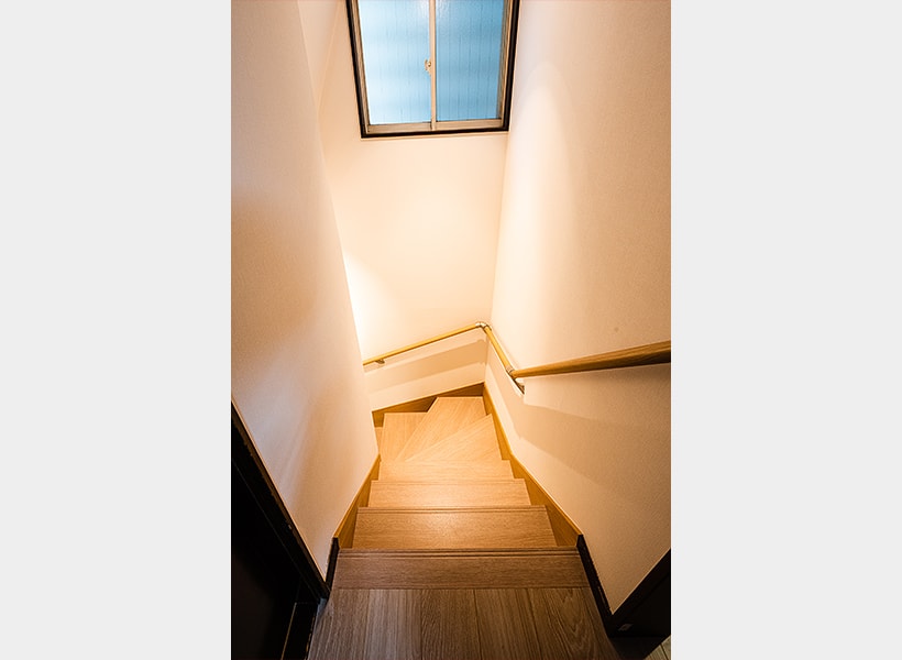 現状から改善したいこととしてO様が上位に挙げていらっしゃったのが、階段勾配のキツさと家の中の寒さでした。そこで、玄関ホールにあった階段の上り口をリビングの中に移動してリビングイン階段とし、段数を1段増やすことで蹴上高さを低くして急な勾配を解消すると同時に、2階の寝室と1階のLDK・トイレをつなぐ動線が短くなるプランをご提案しました。「寝室とトイレが近くなるこの階段のプランが、お願いしようと考えた大きなポイントでした」と奥さま。断熱については、布基礎だった床下一面にコンクリートを敷設して断熱材を装填することで足元からの冷えを解消し、壁についても断熱材を入れ、二重サッシや断熱サッシを採用するなどして、断熱性能を上げました。また、強度に不安を感じていらっしゃったLDKのコーナー出窓は撤去して、壁をはさんだふたつの窓とし、雨漏りが心配だとおっしゃるバルコニーも撤去して、屋根は全体をカバー工法で新しく仕上げました。「リフォーム後は住まいの中がとても暖かくなり、エアコンの設定温度も低くてすむようになりました。ランニングコストやメンテナンスコストは最低限で済むようにと、建物自体の性能を上げる部分に費用をかけたことは正解でした」とお話しくださいました。