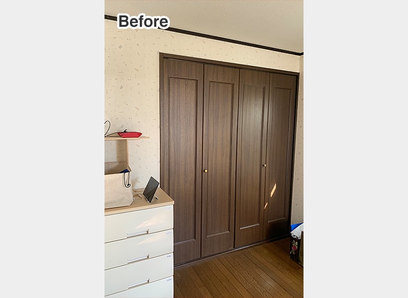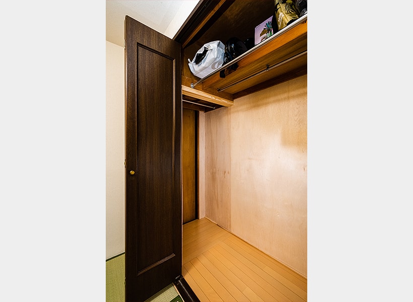 クロゼット内部は、ほとんど使用していなかった隣室のクロゼットとの間の壁を取り除き、和室側から使えるようにしました。「収納量が増えて使いやすくなりました」と奥さま。