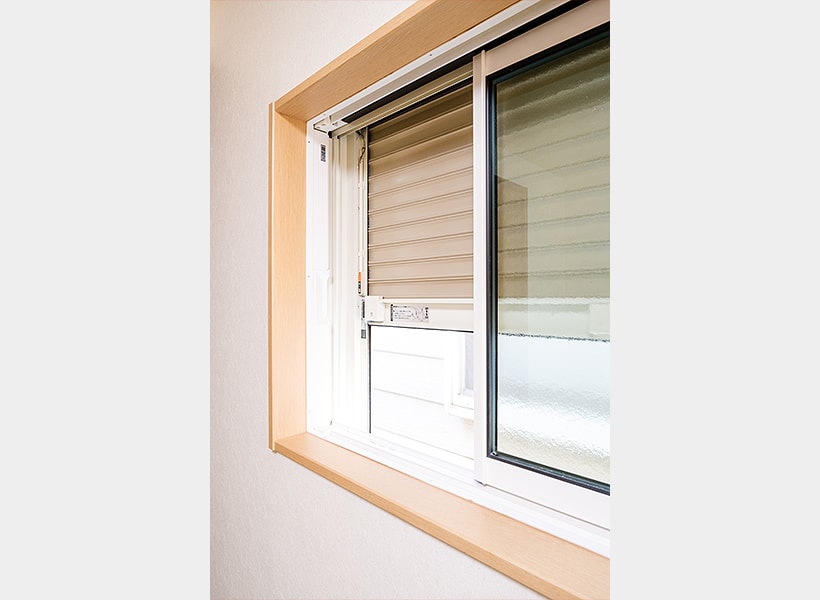 出窓は撤去し、窓のサイズも小さくして、断熱サッシと電動シャッターを設置しています。「隣家との距離が近いので、音の静かな電動シャッターをお願いしました」と奥さま。