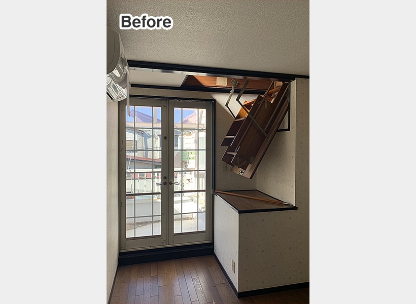 以前の洋室を和室へと変更しました。「ずっと旅館のような雰囲気の和室が欲しいと思っていました。ここは布団を敷いて寝室にしています」と奥さま。以前は大きな出窓でしたが、隣家との距離が近いこともあって、遮光カーテンを閉めていることが多かったそうです。クロゼットの扉は以前のものをそのまま使用しています。