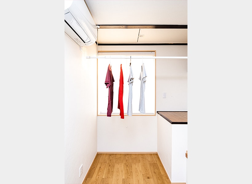 ベランダを撤去し、和室に洗濯物を干すスペースを設けました。階段の形状が変わったことでできてしまう段差をカウンターにしました。「ものを置くのに案外使いやすいカウンターです。グルニエとの行き来もしやすくなりました」と奥さま。