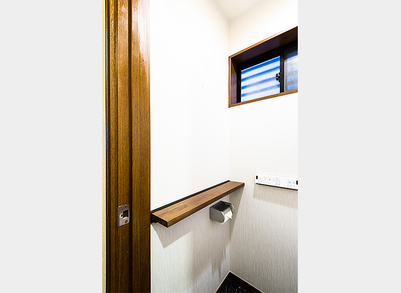 バルコニーの漏水はすぐに手を打たなくてはいけない状態だったので、さっそく修繕と防水工事を行い、その後に1階の洗面室と1階・2階のトイレのリフォームを進めていきました。洗面室とトイレの商品選定について息子さんは「仕事で数多くの家やモデルハウスを手掛ける中で、自宅で使ってみたいと思っていた製品をお願いしました。リクシルのキャビネット付トイレ『リフォレ』もそのひとつでした」とおっしゃいます。「仕事でリクシルの住宅設備機器をよく扱っていたので、メーカーは迷わずリクシルを選びました。トイレについてはタンクや給水管、配線などを露出させずにすっきりさせたいと考えていましたが、タンクレスの便器を選ぶと手洗い器を別に設けなくてはならなかったので、我が家にはこの製品がよいと思いました」とのこと。キャビネットや壁、床の色についても、息子さんがお選びになったそうです。